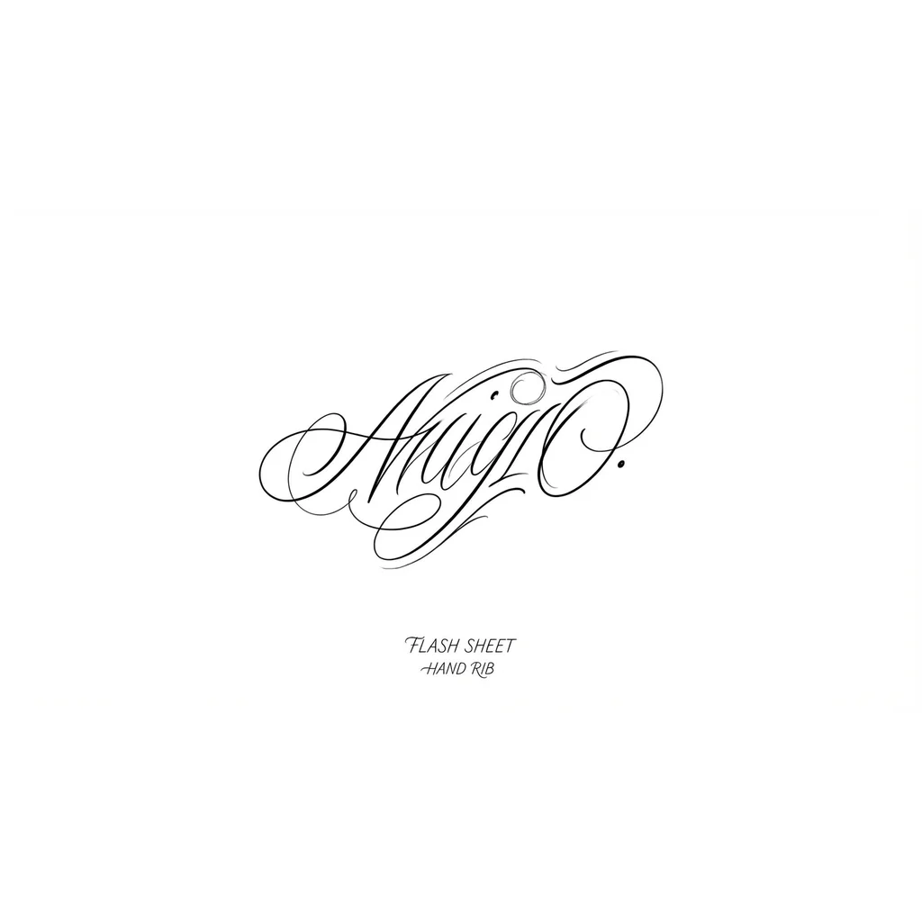 сделай эскиз тату на ребре руки в каллиграфическом стиле с дорисовками букв в виде линий