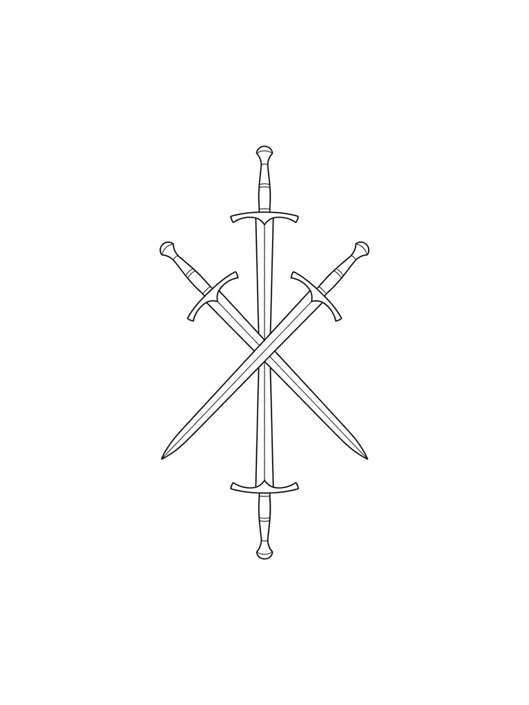три меча два из них вертикально один выше другого ,а один наизкось пересикает два меча