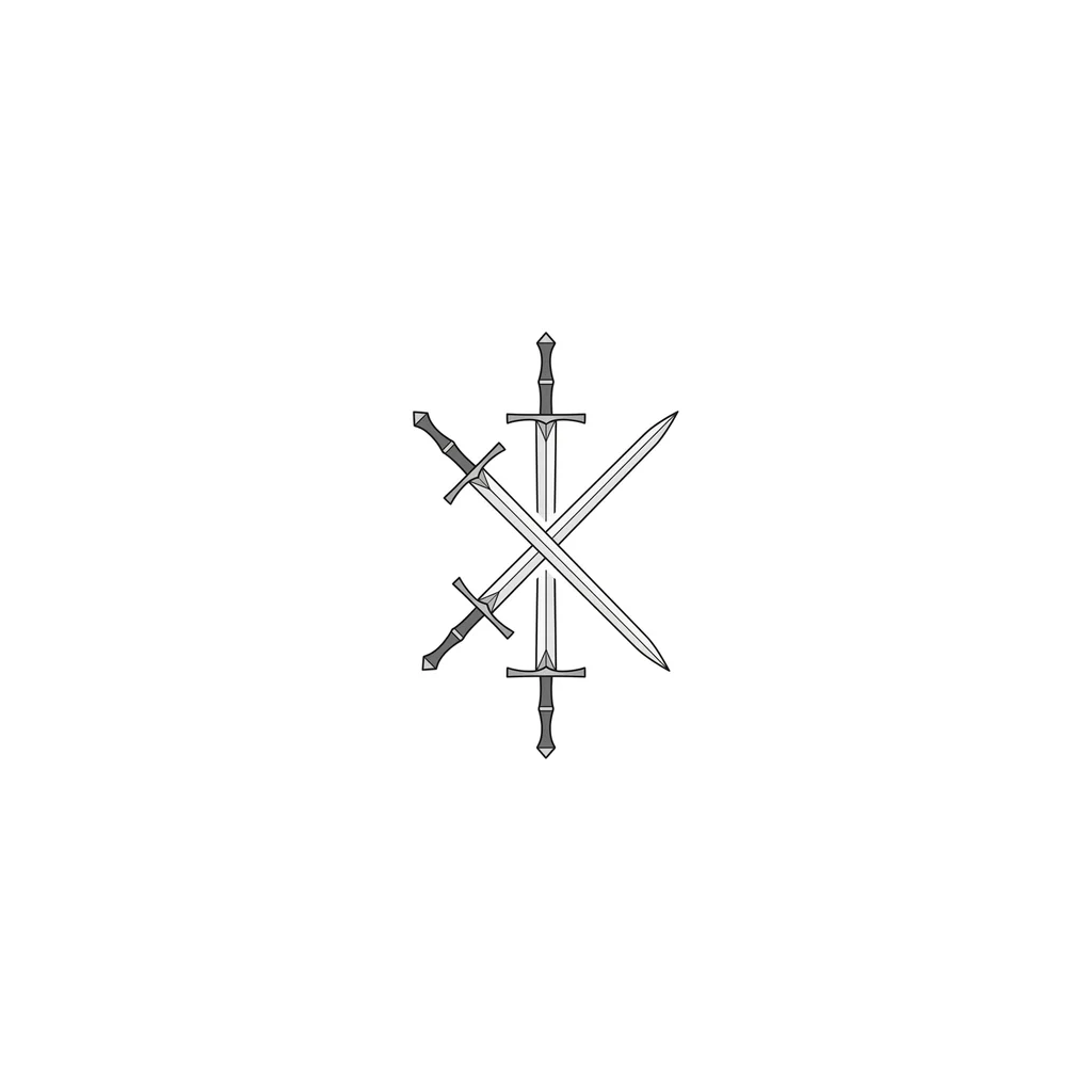 один меч выше другого вертикально ,а третий меч пересекает два других наизскось