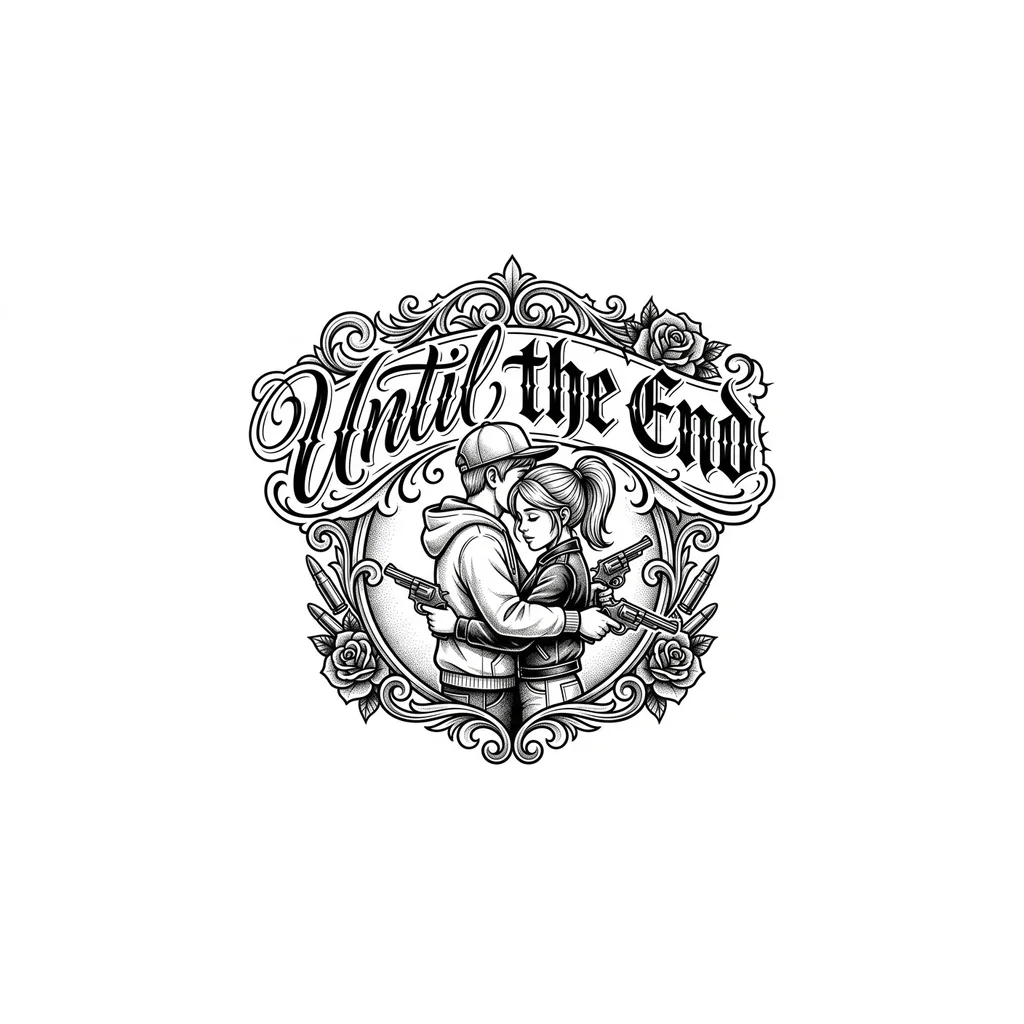 Парень и девушка обнимаются с пистолетами в руках