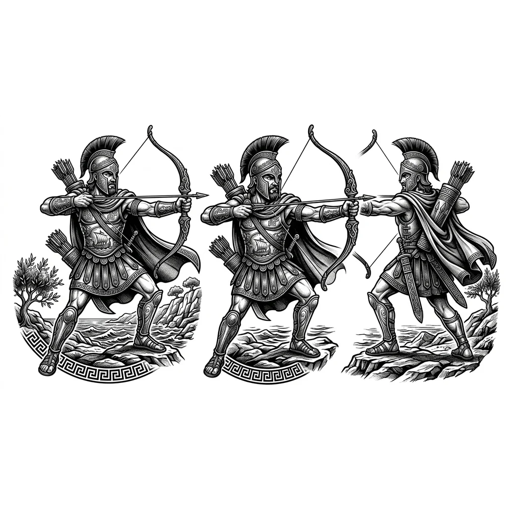 Одиссей, древний воин, царь острова Итаки, с луком, в греческом шлеме