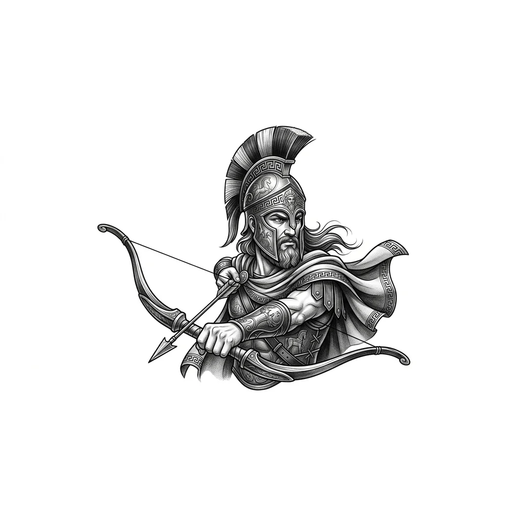 Одиссей, древний воин, царь острова Итаки, с луком, в греческом шлеме, большой хитрец, создал троянского коня