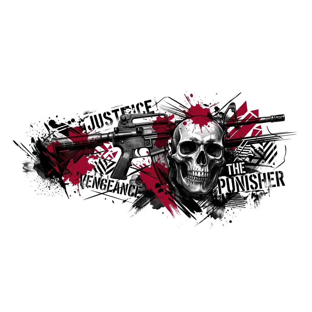 Тату эскиз Трэш полька — каратель с оружием на тыльной стороне предалечья
