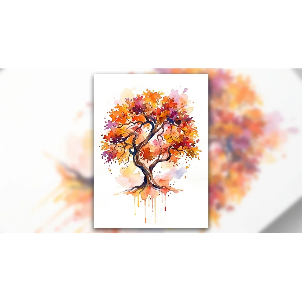 дерево акварельное осеннее