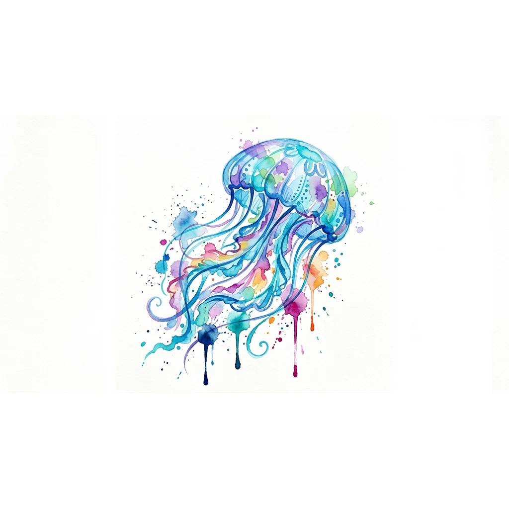 медуза акварельная прозрачная голубая