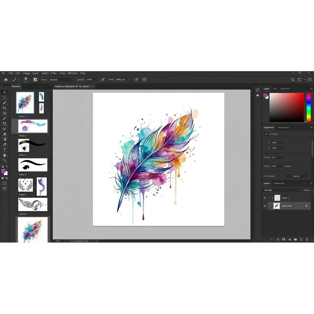 перо акварельное с брызгами