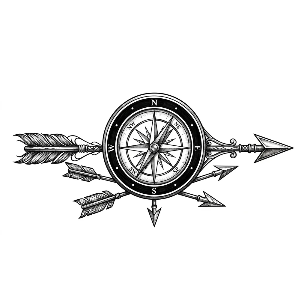 мужская тату компас со стрелками