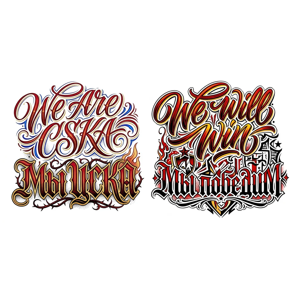 На двух руках на тыльной части запястья Мы ЦСКА на одной руке Мы победим на другой