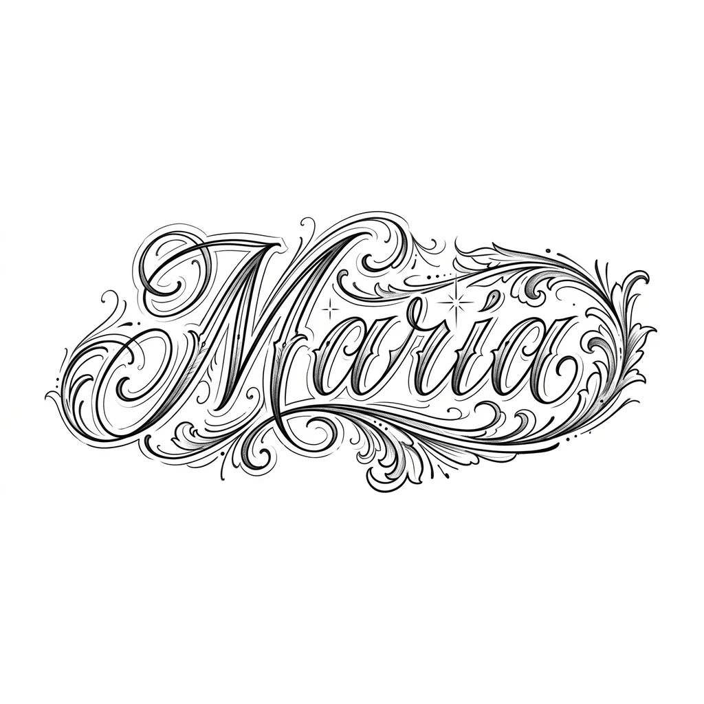 Создай эскиз для татуировки со шрифтом MONSIEUR LA DOULAISE С именем Мария только на итальянском