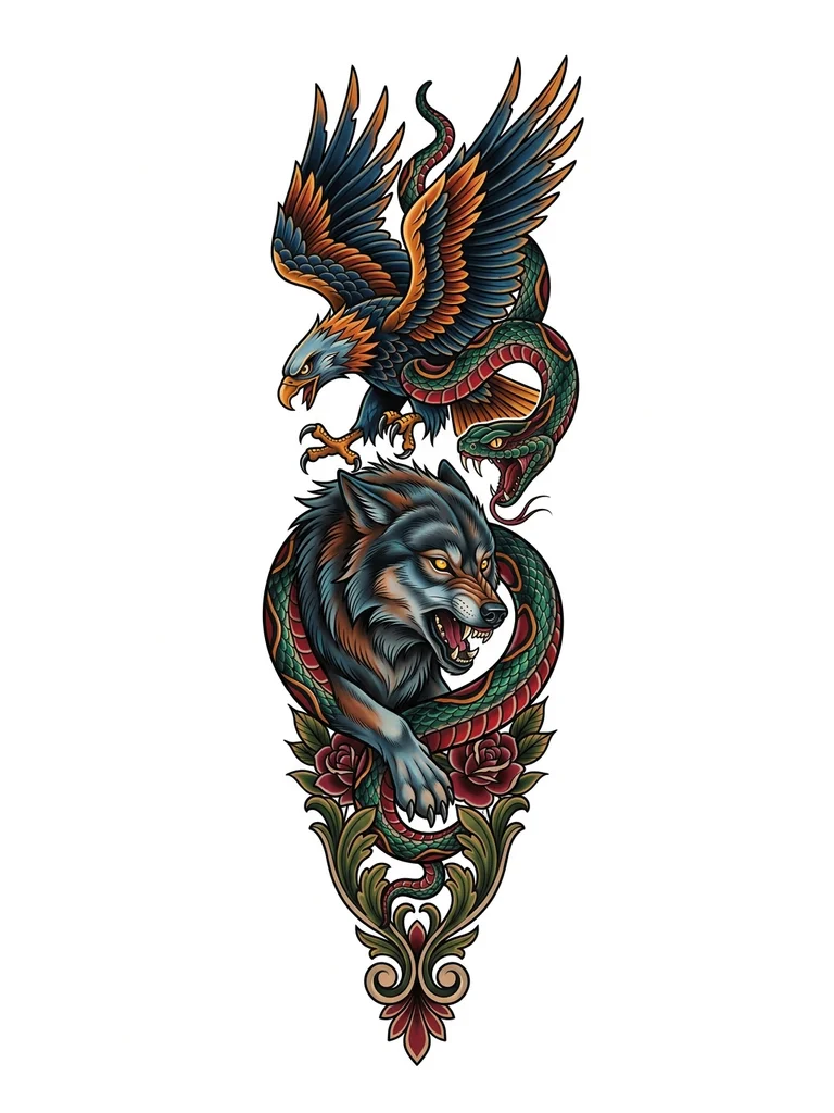 на рукав расположить волка орла и змею