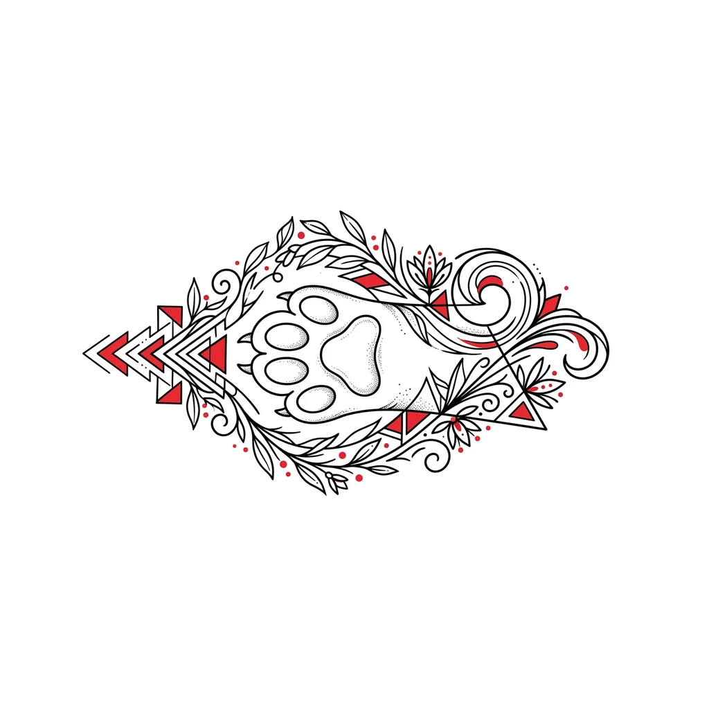 сделай кошачью лапку а вокруг нефорский стиль само тату черное а некоторые элементы красные