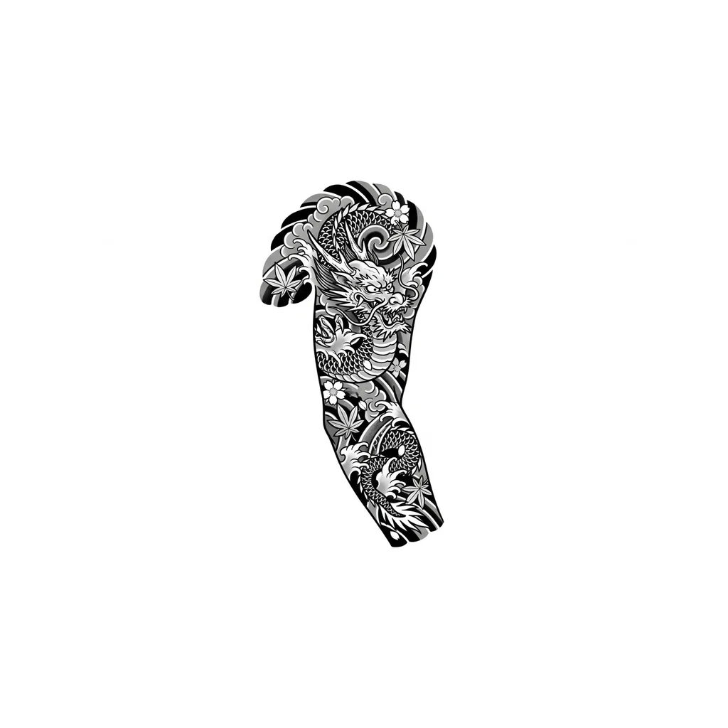 Дракон, волны, листья