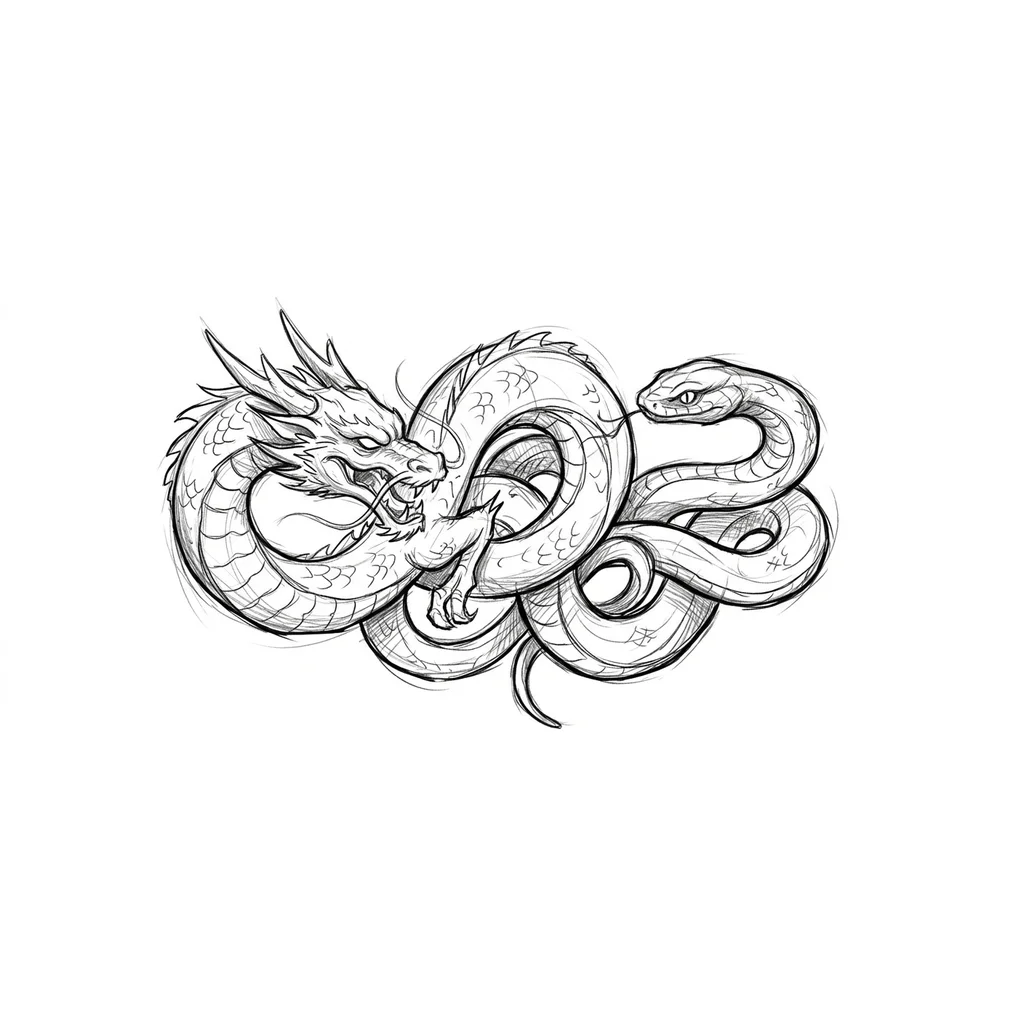 Тату дракона с змеёй где они переплетаются