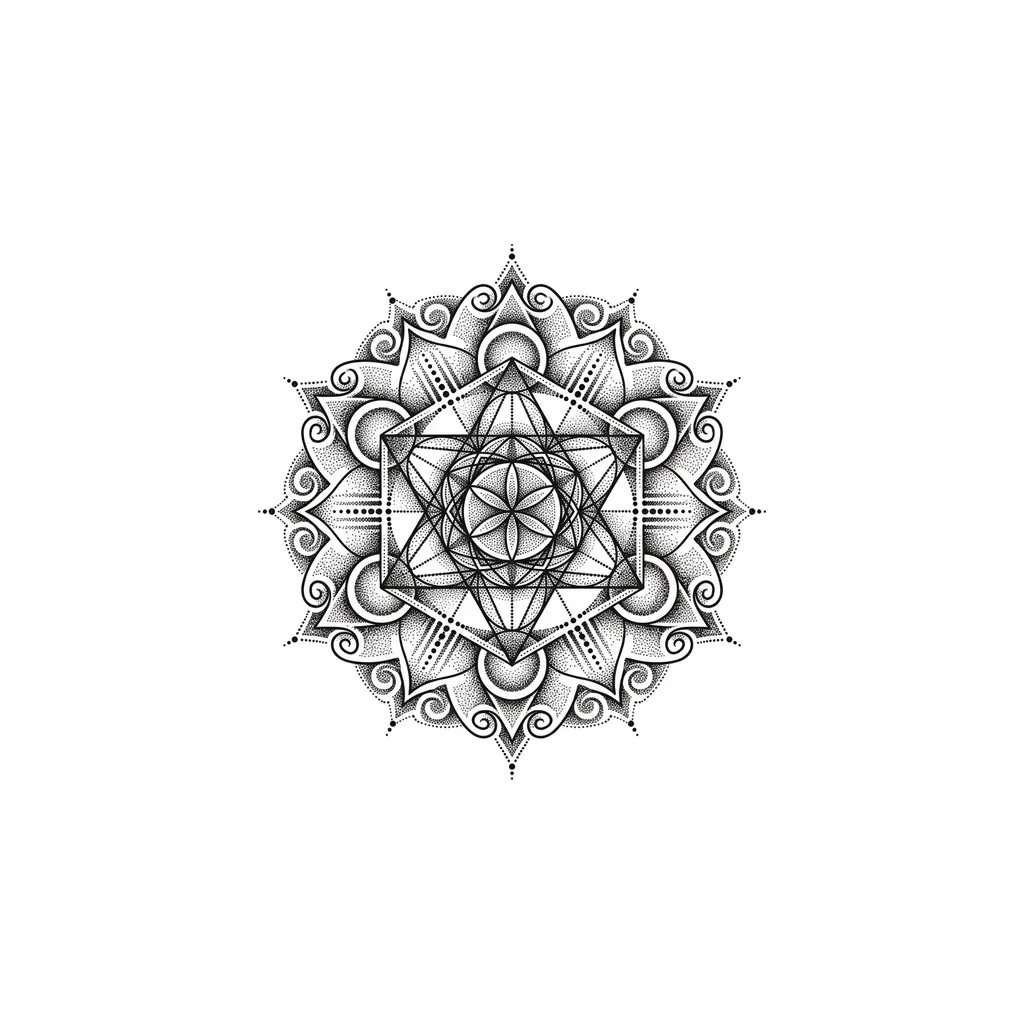 TATTOO SKETCH ORNAMENT IN THE DOTWORK STYLE. MINIMALISM