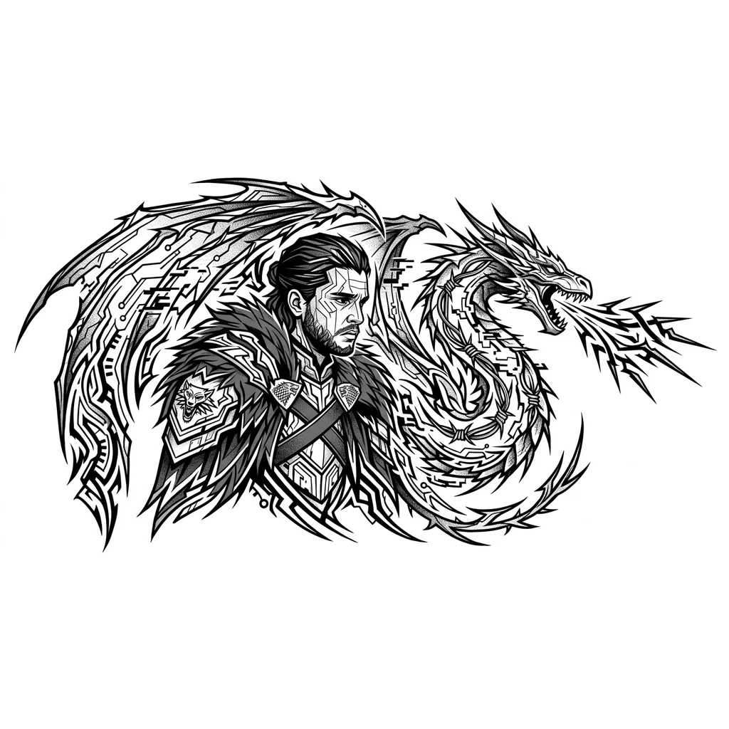 тату с джоном сноу из игры престолов, с драконом