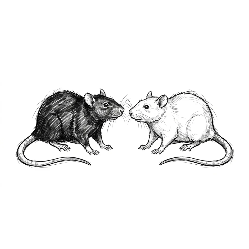 Две крысы, одна черная другая белая, смо...
