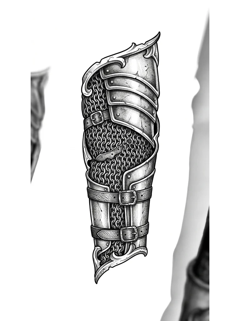 детализированный латы с кольчугой и ремешками, заполняет всё предплечье со всех сторон