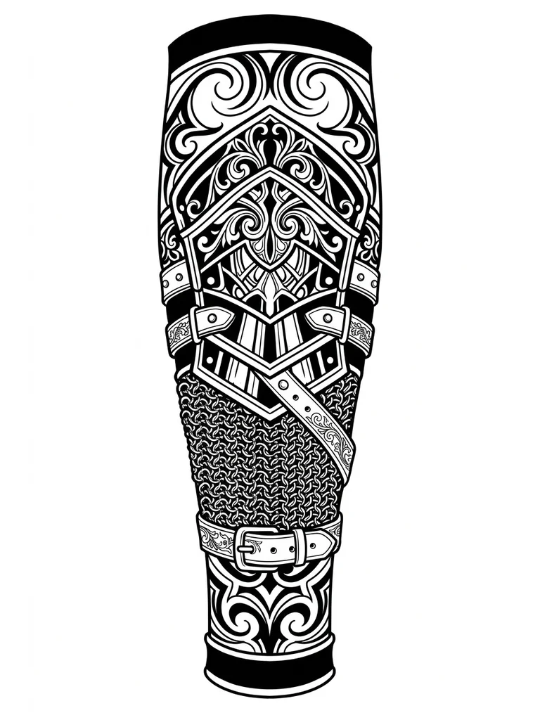 детализированный латы с кольчугой и ремешками, заполняет всё предплечье со всех сторон